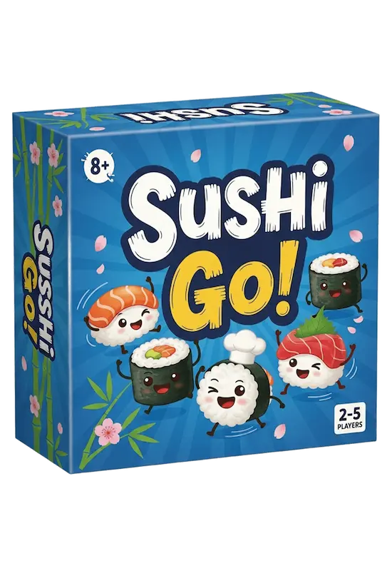 In het kort: Sushi Go! is een snel kaartspel waarin je punten scoort door de beste sushi-combinaties te verzamelen. Je kiest een kaart en geeft je hand door, waardoor je constant moet kiezen tussen je eigen score verbeteren of je buurman blokkeren. Met schattig artwork en simpele regels is dit een hit voor gezinnen en feestjes.