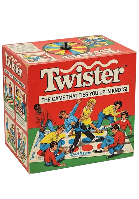 Een draai aan de wijzer bepaalt direct je lot. Gelach doorbreekt de concentratie zodra iemand wankelt. Bij Twister draait het simpelweg puur om fysiek overleven op de mat.